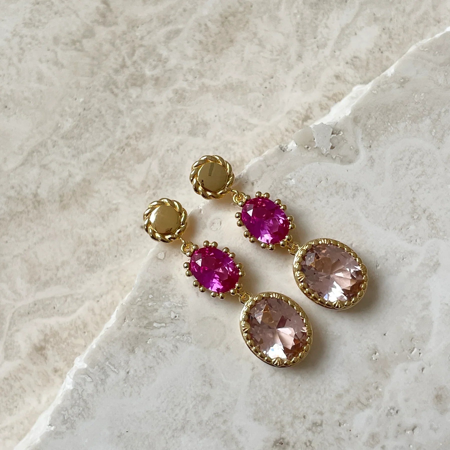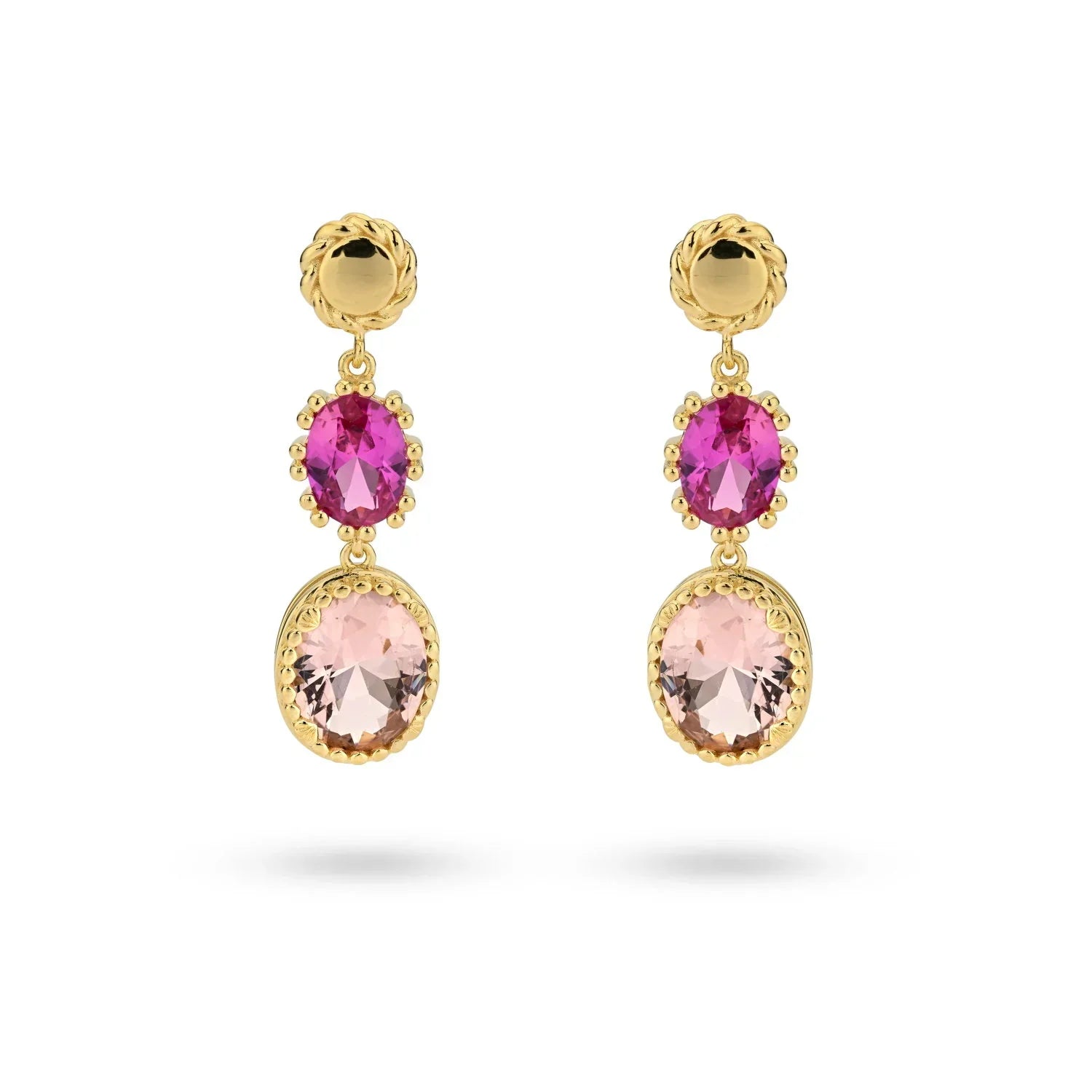 24Kae Yellow Gold Oval Drop Earrings with Pink Stones are beautifully crafted earrings that bring a touch of luxury to your jewellery collection.