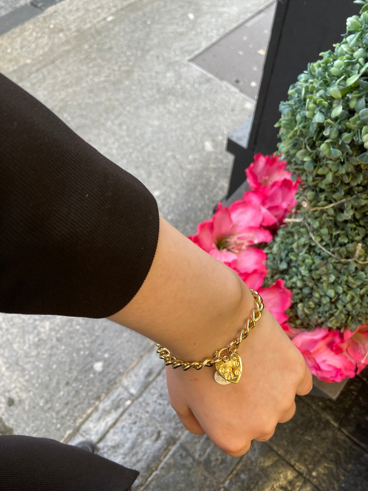 9ct gold solid charm bracelet with a chunky chain and heart lock