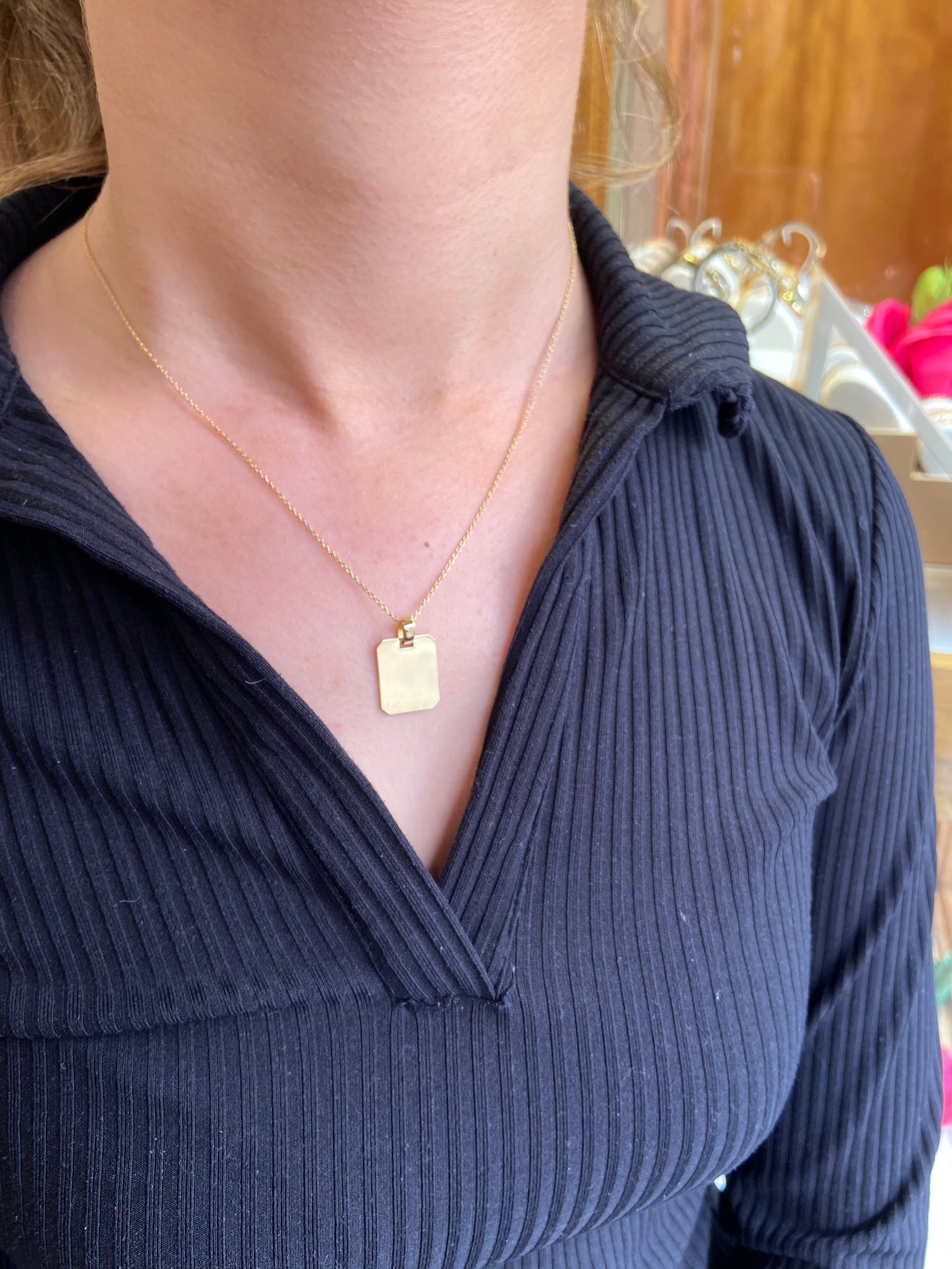 9ct gold dog tag is a beautifully crafted piece that brings a touch of luxury to your jewellery collection.