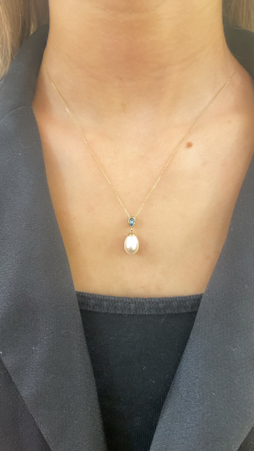 9ct gold pearl and aquamarine pendant is a beautifully crafted necklace that brings a soft, refined shine to any look.