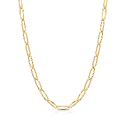 Gold Paperclip Chunky Chain Necklace with Gold Wave Pink Sparkle Charm is a beautifully crafted necklace that brings a soft, refined shine to any look.