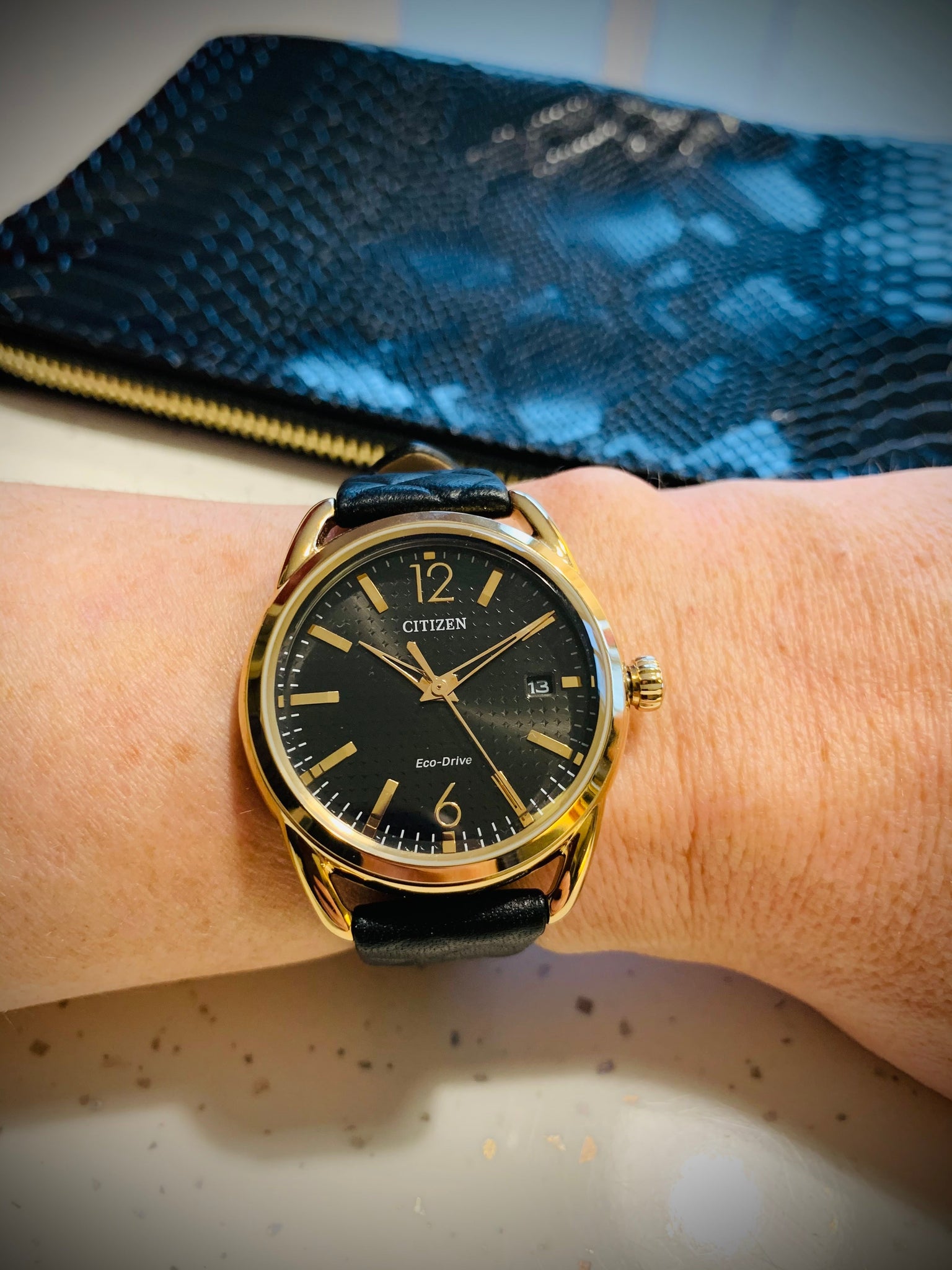 - Eco-Drive Technology: Solar powered watch. Charges with light, Never requires battery or battery replacement.