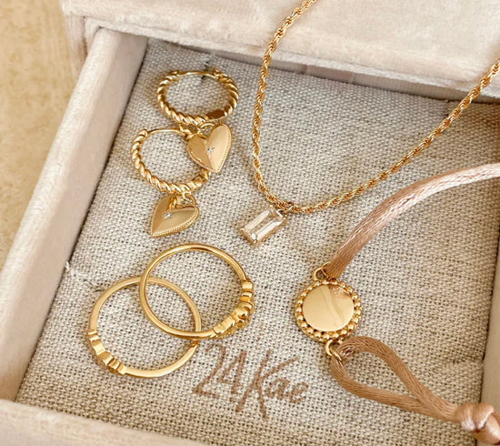 These vintage look 24Kae creole pendants with gold plated heart are beautiful for every day. The creole has a rope structure. The creoles are made of 925 sterling silver with 24 karat gold. Every 24Kae jewelry piece is designed with love and an eye for detail by Kae Sutherland. All 24Kae earrings have the authentic characteristic of a 24Kae engraving.