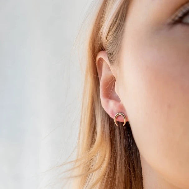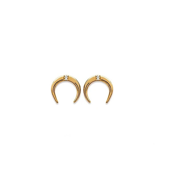 Over The Moon 18k gold plated earrings are a very simple and cute addition to your jewellery collection! . Set with a single cubic zirconia these earrings are great for daily casual or informal work wear. An informal jewellery gift to someone you like, you know they will be 'over the moon', sorry had to do it!