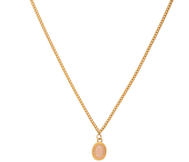 This vintage look necklace from 24Kae with gourmet links and has a oval beige stone as a pendant. The necklace is 42 cm long but can also be longer with the extension of 5 cm. Wear this necklace as a real asset to your outfit. The necklace is made of 925 sterling silver plated with 14 karat gold. All 24Kae jewelry is designed with love and an eye for detail by Kae Sutherland. Each 24Kae necklace has the authentic characteristic of a handmade charm with engraving and a touch of beige.