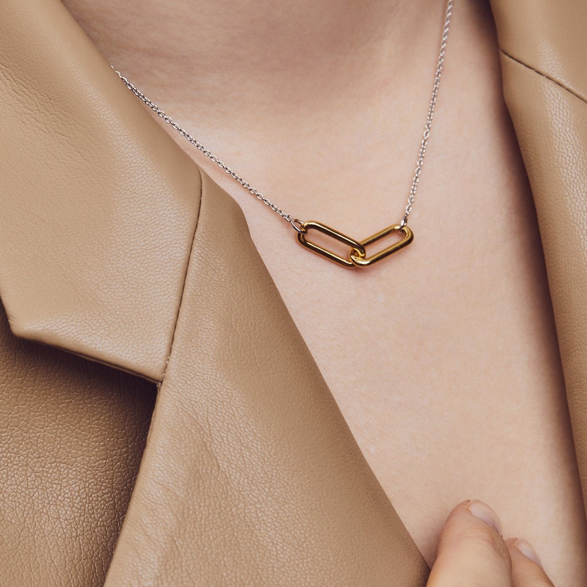 The necklace sits beautifully when worn alone or layered with other chains for a modern, curated style.
