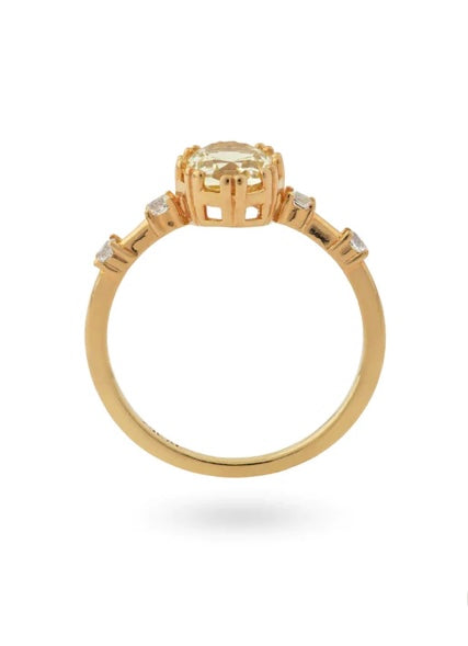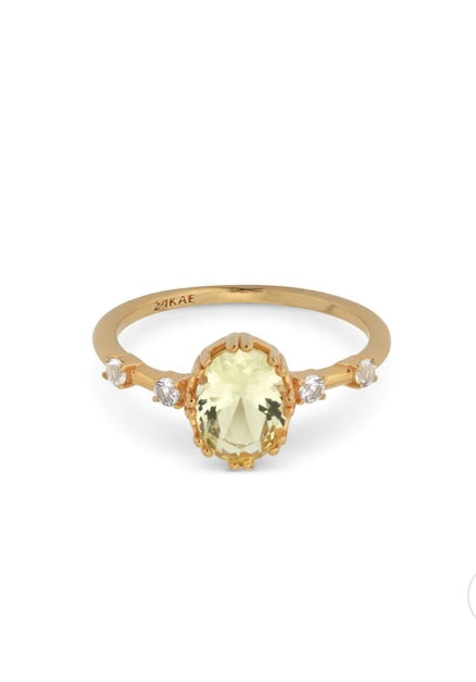 This vintage look 24Kae ring has a beautiful oval stone with two little lilac stones on both sides. This ring is made of 925 sterling silver plated with 14 karat gold. Every 24Kae jewelry piece is designed with love and an eye for detail by Kae Sutherland. Each 24Kae ring has the authentic characteristic of a 24Kae engraving.