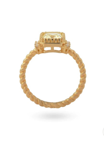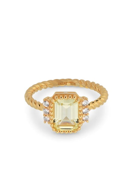 This beautiful 24Kae ring is equipped with a rectungular stone, finished with small stones on both sides. The ring belt has a rope structure for a playful effect. Do you want a real eyecatcher? This vintage look ring is all you need! The ring is made of 925 sterling silver plated with 14 karat gold. Every 24Kae jewelry piece is designed with love and an eye for detail by Kae Sutherland. Each 24Kae ring has the authentic characteristic of a 24Kae engraving