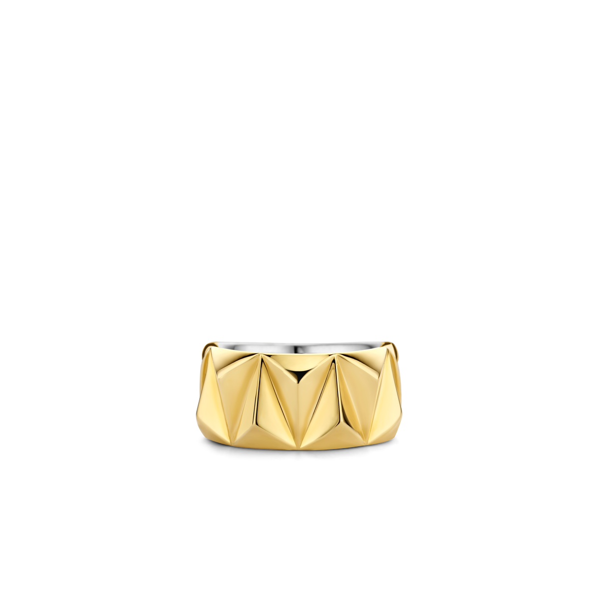 This TI SENTO - Milano gold-plated silver ring 12279SY features a sophisticated stud structure. The ring is crafted from 925 sterling silver and plated with yellow gold. This bold statement piece is a real eye-catcher. Wear it solo or stack it with others, it won't fail to turn heads.