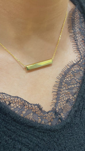 Beautiful gold plated Engravable bar pendant with 18 inch chain, can be engraved on all 4 sides