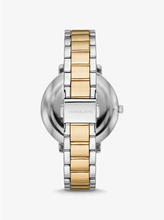 Our latest version of the Pyper watch features an MK-lettered dial detailed with pavé crystals for a luxe finish. With a sleek two-tone bracelet strap, it’s the perfect timepiece to pair with a stack of bracelets on a night out.