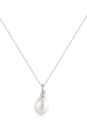 Gold Freshwater Pearl and White Cubic Zirconia Bezel Set Slider Necklace