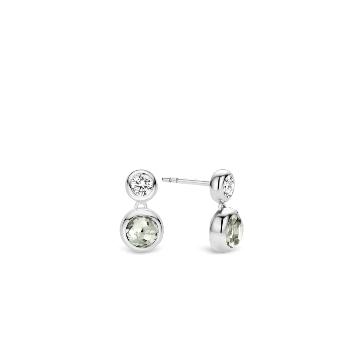 These earrings from the TI SENTO - Milano collection have two components. Both components are faceted round zirconias. The top part has a slightly smaller zirconia than the bottom one, in grey-green. Both are set in rhodium plated sterling silver for long-lasting shine and protection.Available with fast, reliable delivery across Ireland from Nolan & Hilsers Jewellers – your trusted local jeweller for quality, authenticity and service.