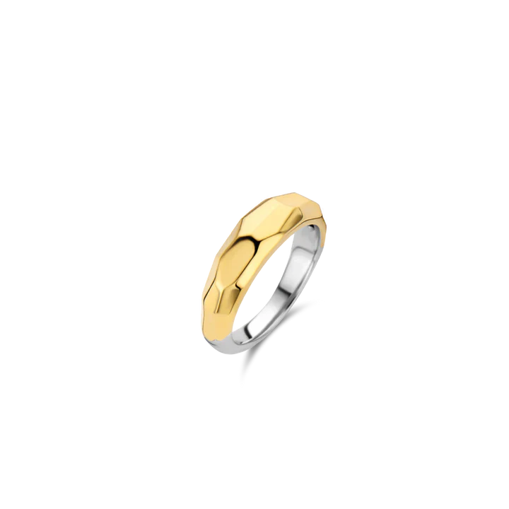 This TI SENTO silver ring 12201SY has a rounded and facetted gold-plated band. A vintage design with a real retro feel.