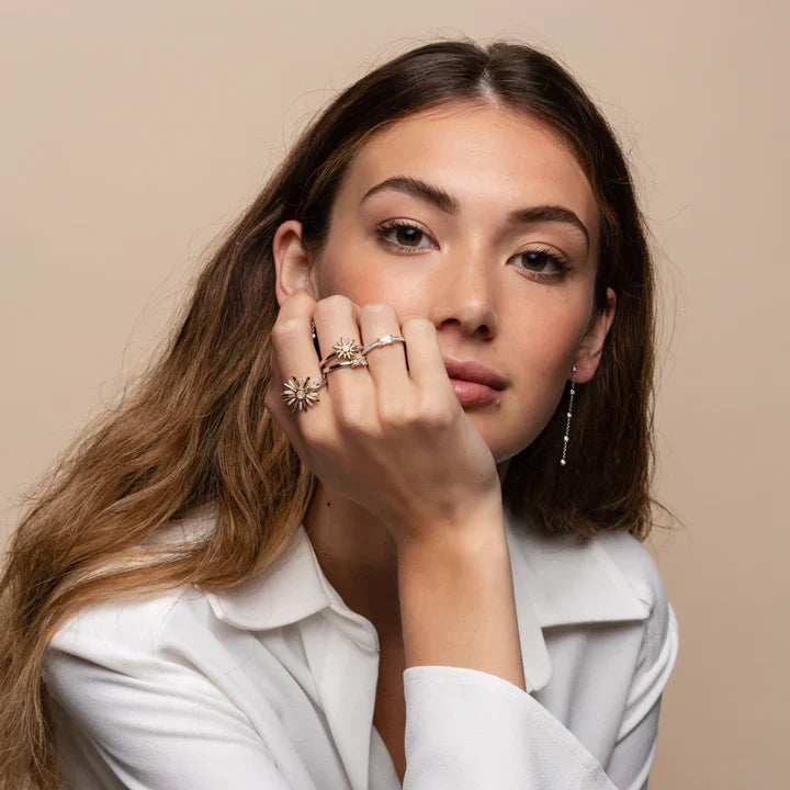 This TI SENTO gold-plated silver ring 12244ZY flaunts a small, elegant star shape featuring gold-plated and pavé rays with a creamy mother-of-pearl doublet center stone. The design was inspired by clear starlit skies and shooting stars. This gold-plated ring is crafted from 925 sterling silver. Carry its light and energy with you day and night.